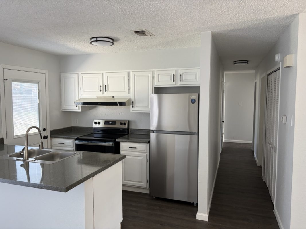 Upgrades include brand-new flooring, modern paint, updated light fixtures, and fully remodeled bathrooms with new tubs, tile, vanities, and toilets. The kitchen comes equipped with brand-new stainless steel appliances and opens to a bright living and dining area. Move-in ready and a must see.